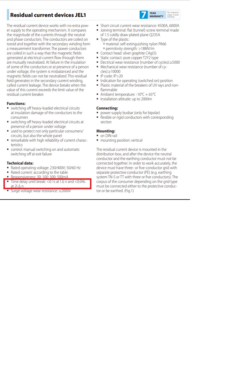 Работи си тест бутона. Също така изключва и когато свържа фаза и "земя" през 25 ватова крушка с нажежаема жичка. Освен това когато прожектора свети и съединя пак през крушката нула и "земя" пак изключва.