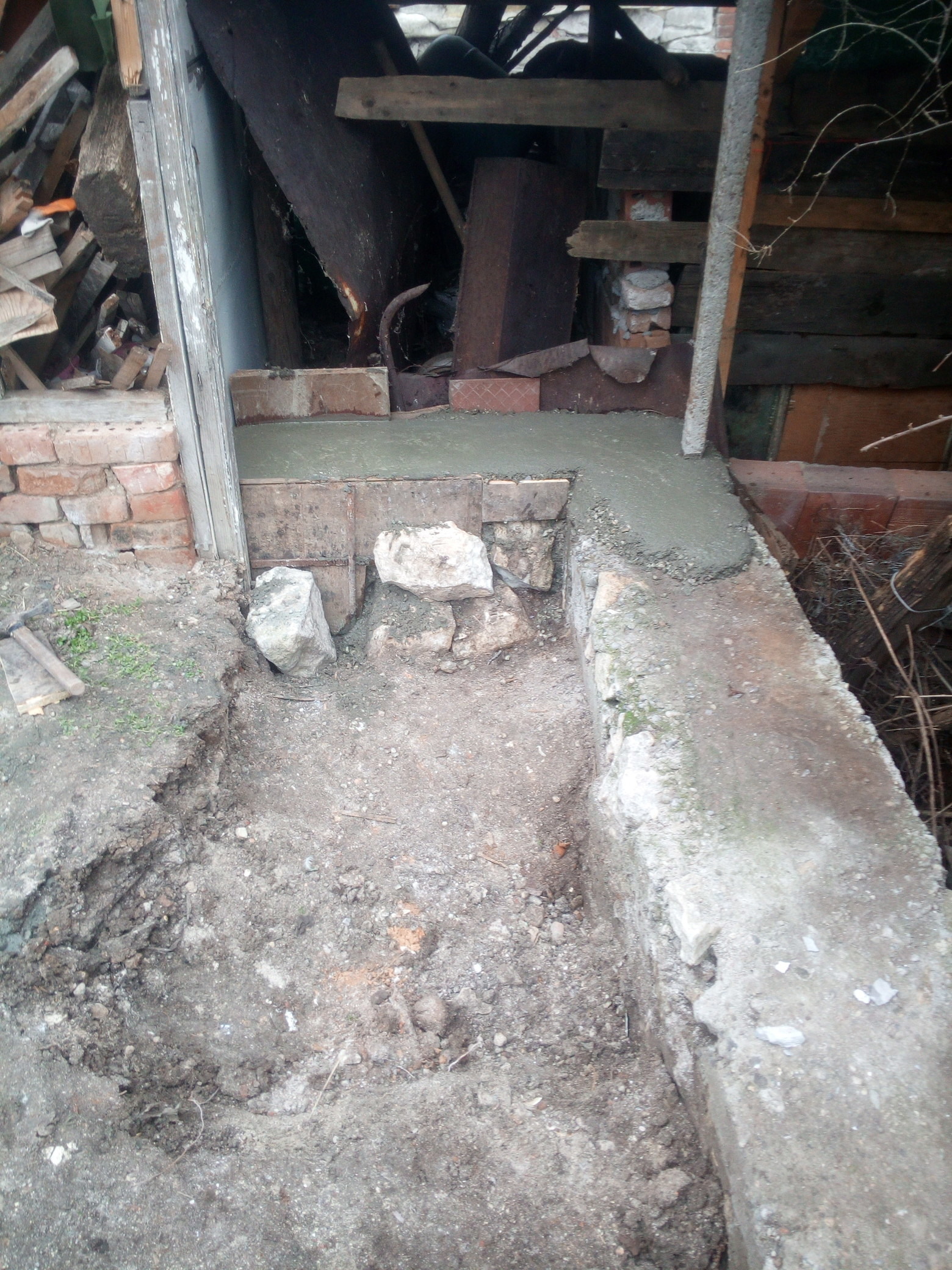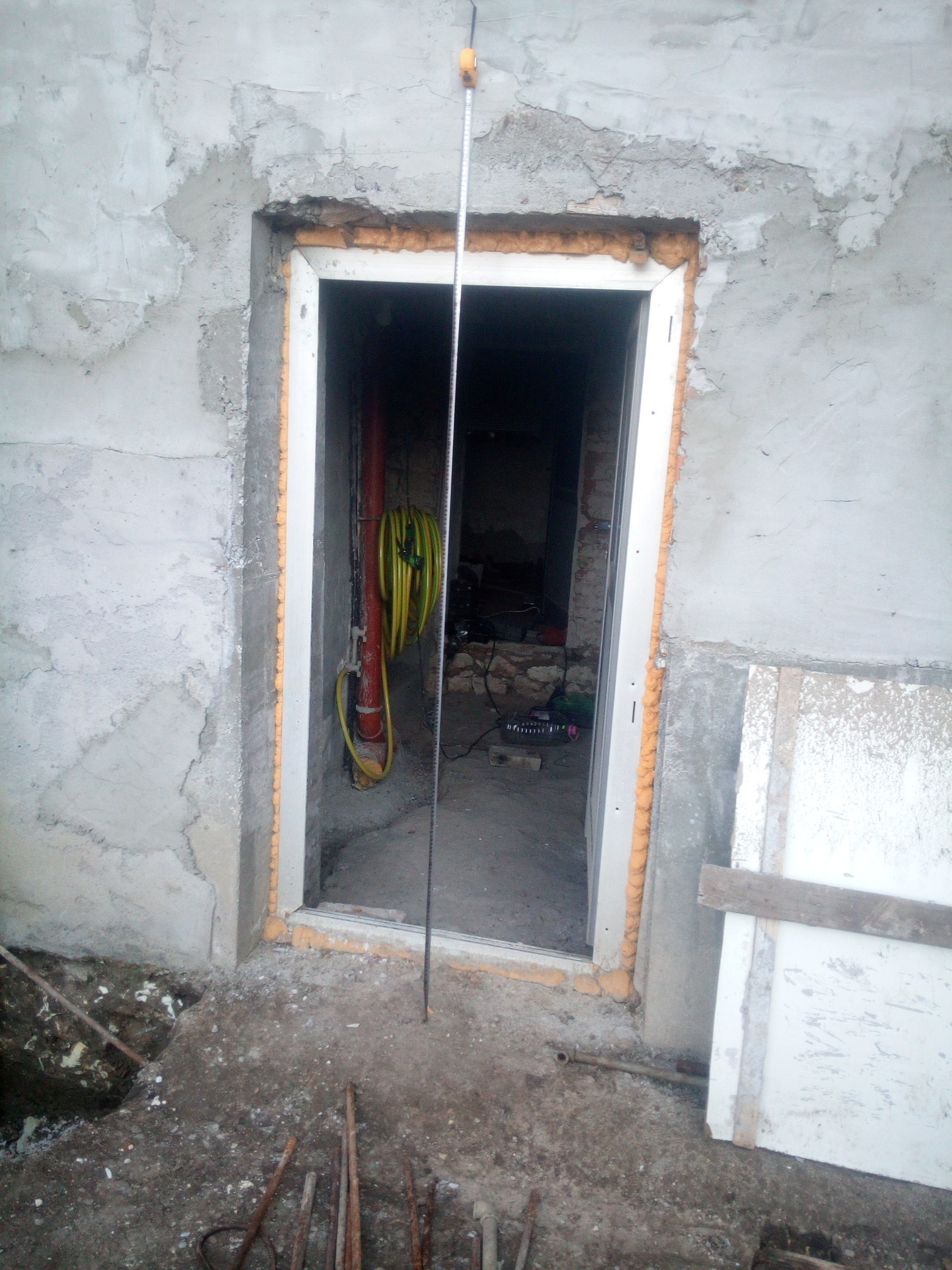 1. Височината на отвора на вратата за сега е 190 см. от земята, но и аз нахвърлях допълнително пръст за да има наклон към двора да задържа по-малко вода към основите.
