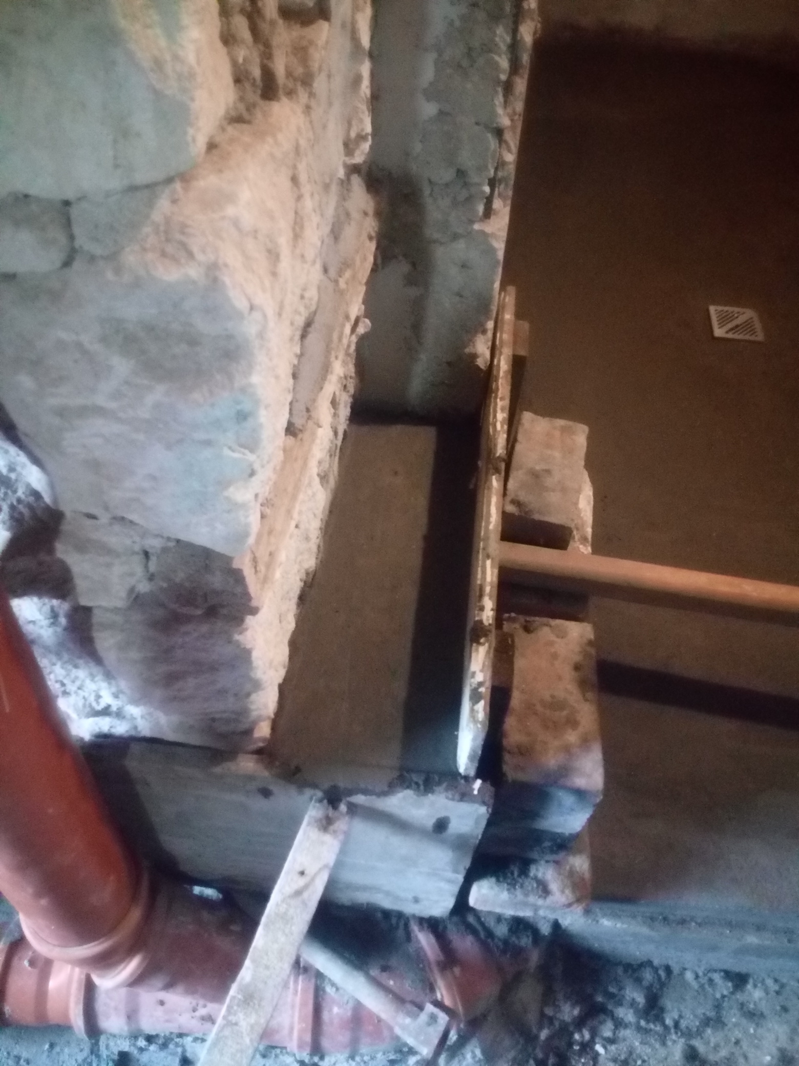 На каменните стени им почиствам фугите, махам камичките, които се разхлабят след почистването, измивам с водоструйка и измазвам с цимент и пясък 1:2 грубо. Правя го стена по стена, в последствие ще ги измажа с цимент и пясък под отвес и мастар, след като приключа с ел. инсталацията и др., за крановете може да направя куфари с ревизии за достъп.