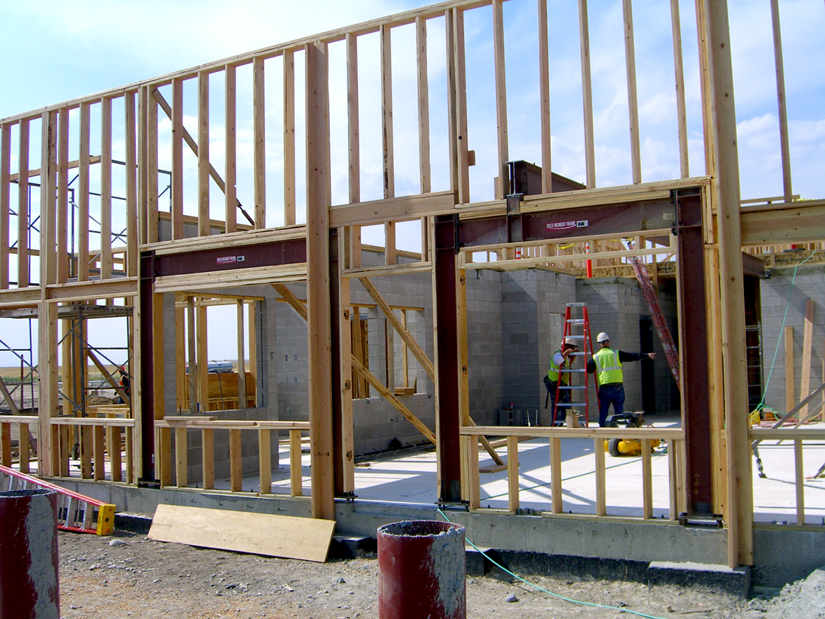 Направи си няколко едноотворни или двуотворни стоманени, моментни, портални рамки, разположени на възлови места (да поемат земетръса и хоризонталните сили) и около тях си изгради зидарията и дървената конструкция. Отгоре, дървен покрив и метални керемиди. Бързо, сравнително евтино и здраво. Да не говорим, че интериорно и екстериорно, може да придобие прекрасно излъчване, включително и да се реализира желанието на автора на темата, да вижда дървенията на покрива над всекидневната.