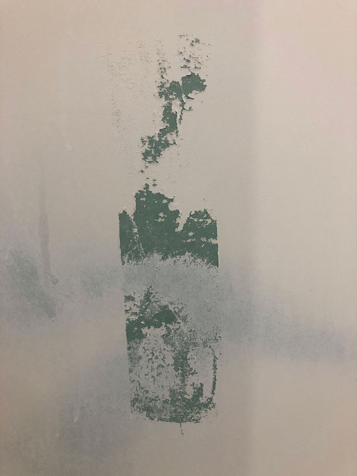 Това което виждам от снимката предполагам е отлепена шпакловка от зелен гипсокартон GKI.