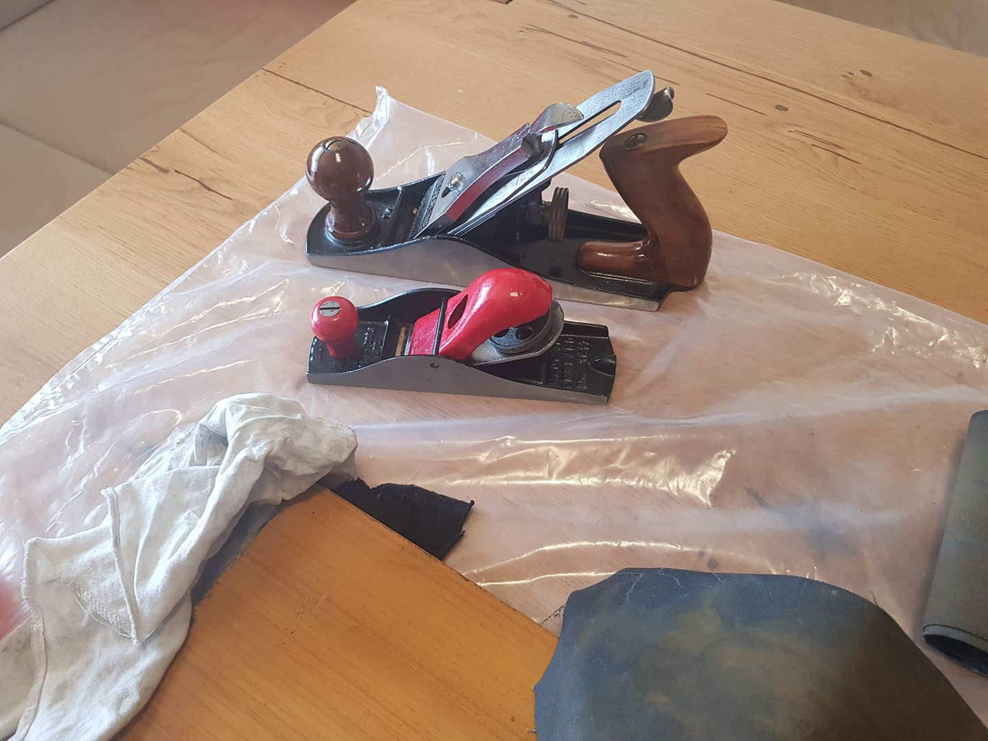 Покрай цялото това стоене вкъщи и за това че нямам одстъп до работилницата, реших да си поизчистя и позаточа ръчните инстументи. И ми изникнаха 4-5 ренденца доста ефтини, бях ги купувал в лот заради едно блок ренде на Стенли. Реих да възтановя 2 за един прител който ще си спретва раотилница( не дърводелска а обща ). Останах доста очарован от резултата. И двете работят страхотно, сега ще видим и колко ще издържат.