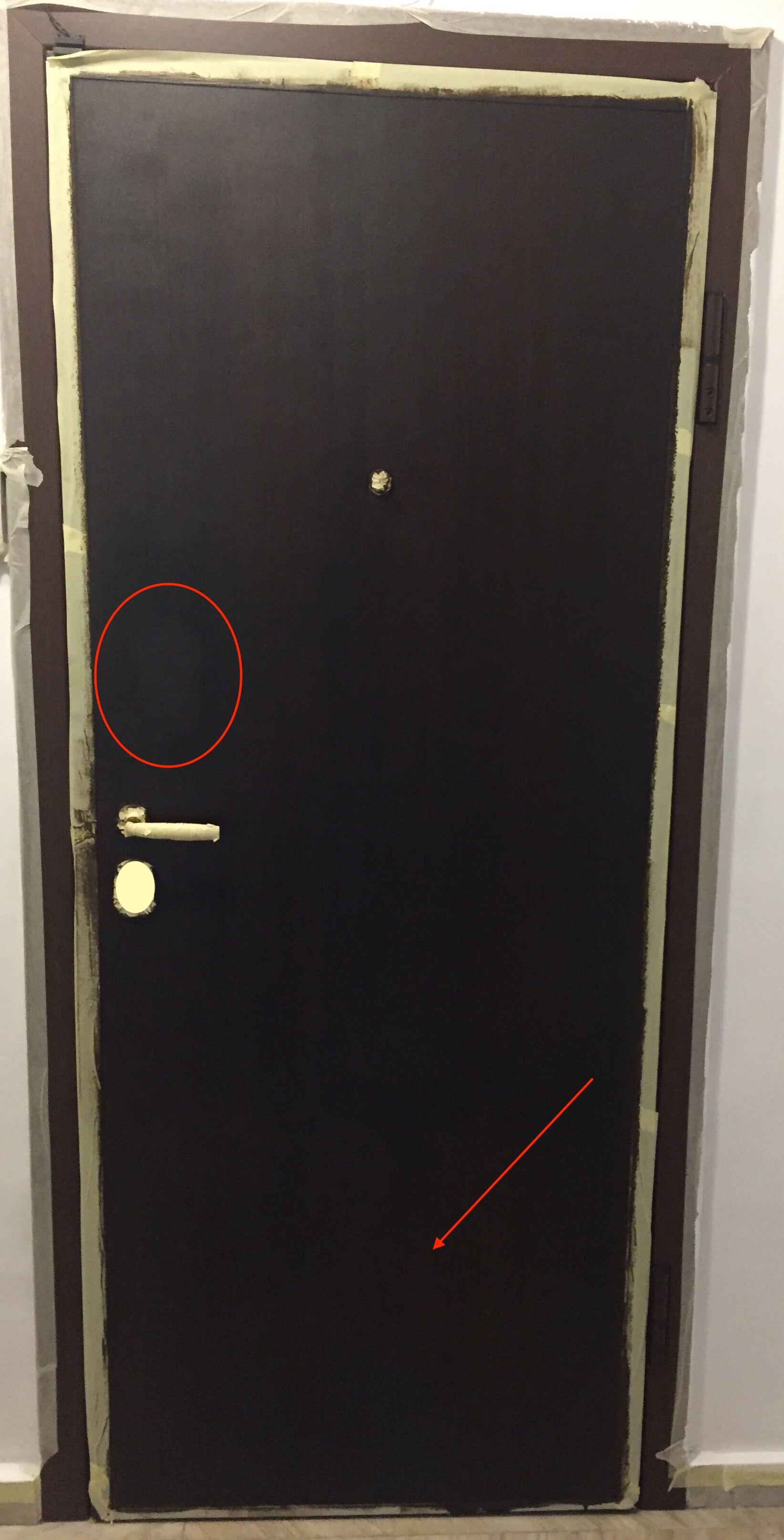 Хубавото е ,че пакостите на домашния любимец се скриха, но за жалост цветът стана леко по-тъмен и петната си личат или поне аз знам, че ги има и се ядосвам. На снимките може би не се вижда толкова ясно, но определено петното над дръжката си личи, там лакът не хвана добре. В долната част на вратата стана на вълни, но се вижда трудно от каченото.