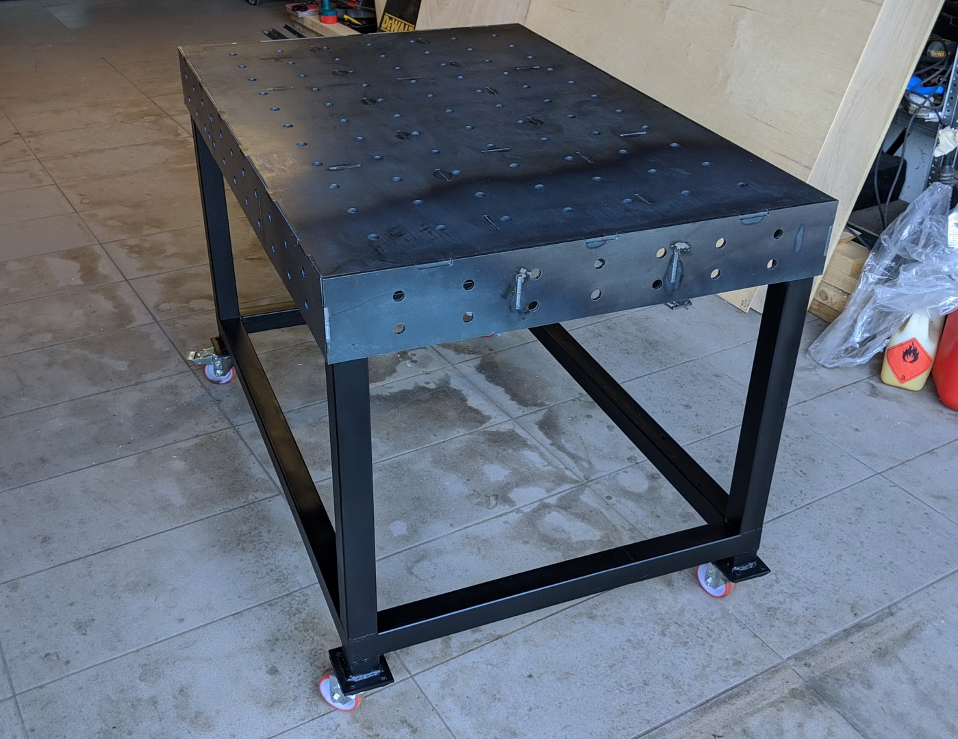 Да се похваля с творението си, което отне доста време и усилия, но в крайна сметка мисля, че се получи доста добре. Това е маса за заваряване, но мисля да й метна един дървен плот отгоре и да се ползва като мултифункционална, а при нужда от заварки, плотът да се сваля. Мислех да сложа лист кофражен шперплат, но всички май са с грозни надписи по тях, което не ме радва особено. Някакви идеи?