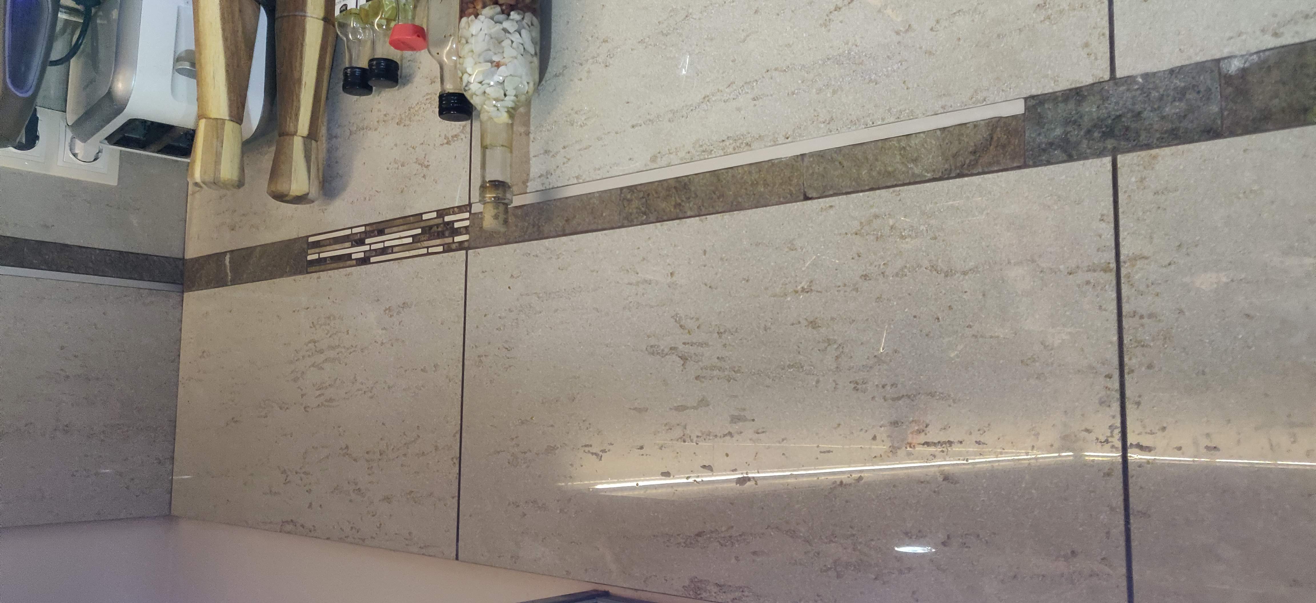 остава само лентата по средата и се чудя как да я запълня... мислех стъклени плочки ама с този нестандартен размер от 4.5 см нямам идея дали ще се събере...ако някой има идеи да споделя...