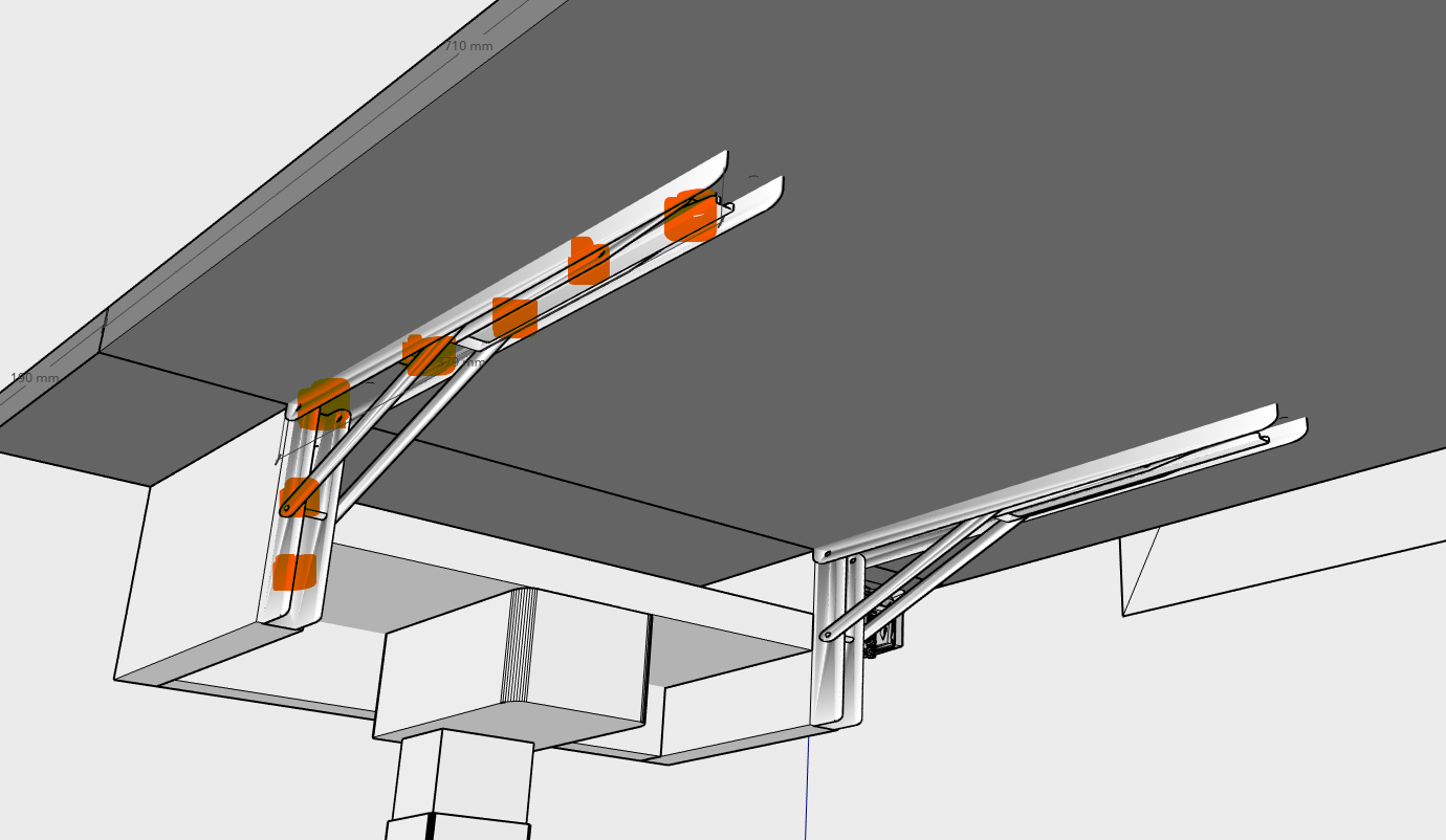 Покрай локдауна от доста време се каня да измисля компактно решение за регулируемо и сгъваемо бюро за спалнята. Статичната му част ще носи теглото на монитор и стойка, а на подвижната ще има само лаптоп, клавиатура, мишка и подпрени лакти