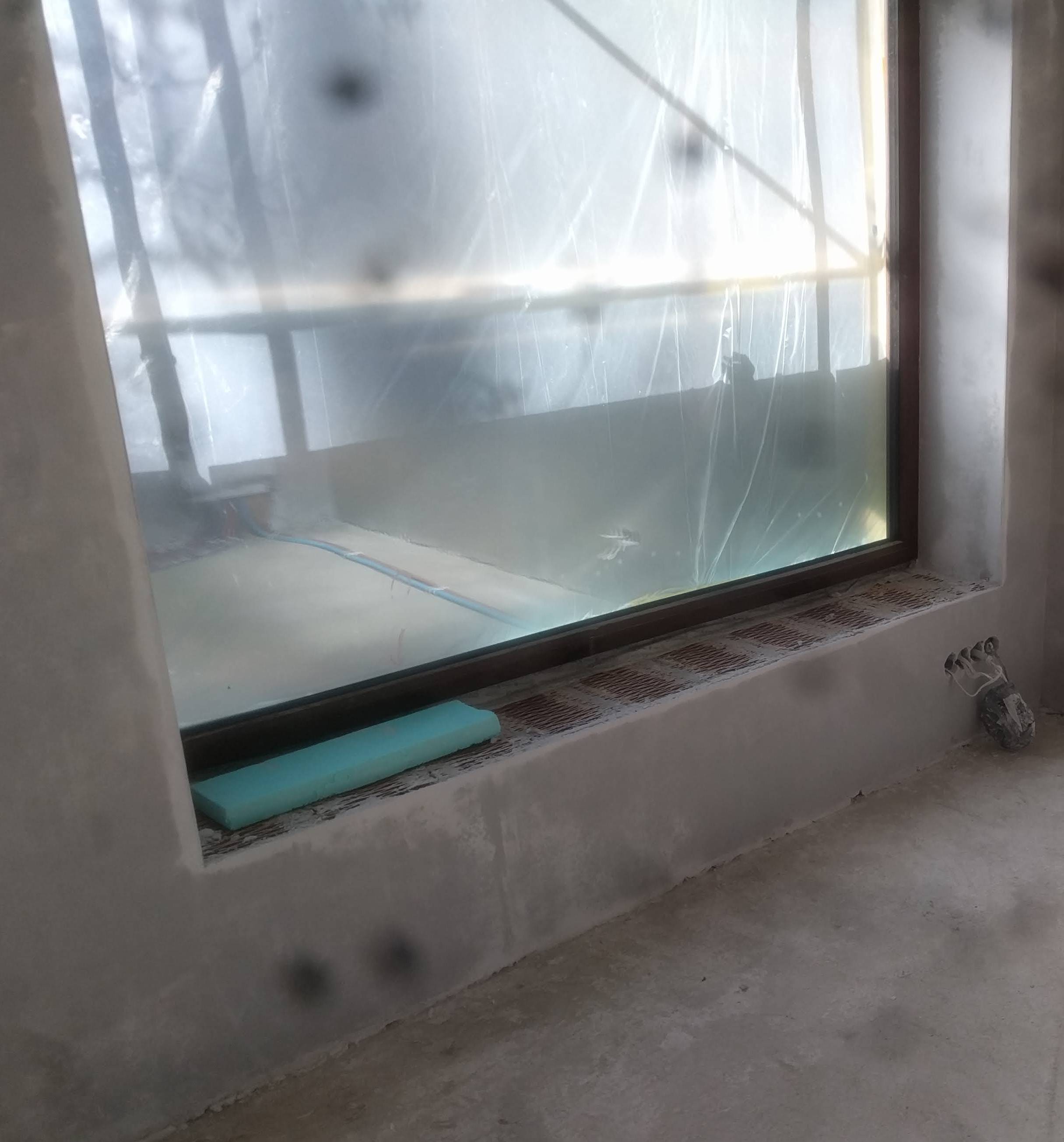 Т.е. ако ще се подпъхва дърво под долния ръб на дограмата замазването на тухлите ще трябва да е с дебелина между 1 и 3.5см.