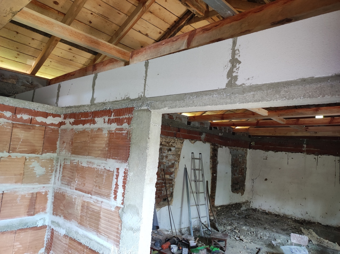 Една от гредите 14Х14 се е огънала надолу и разваля цялата геометрия на тавана. С около 3-4 см. "виси". Искам да дублирам късите междинни гредички отгоре с една друга греда дълга около 4 м. и така да оправя нивото колкото може. Та ми дойде една по-добра (според мен) идея - да я заменя с 4 бр. дъски (дебели са около 2.5 см.), слепени една за друга и прихванати с болтове. Да речем сечение около 10Х20 см. С дълги шпилки да я притегна към големите греди и да ги пристегна. Видимата част отдолу мисля да оформя като четвъртита "кована" глава. При проблемната греда мога да си помогна с надигане като ползвам крик. Преди това ще я анкерирам допълнително в пояса за да не поддаде. Отгоре ще кова ламперия и ми се иска да е на по-малко вълнички. Ако бъркам или имате по-добра идея ще се радвам на включване.