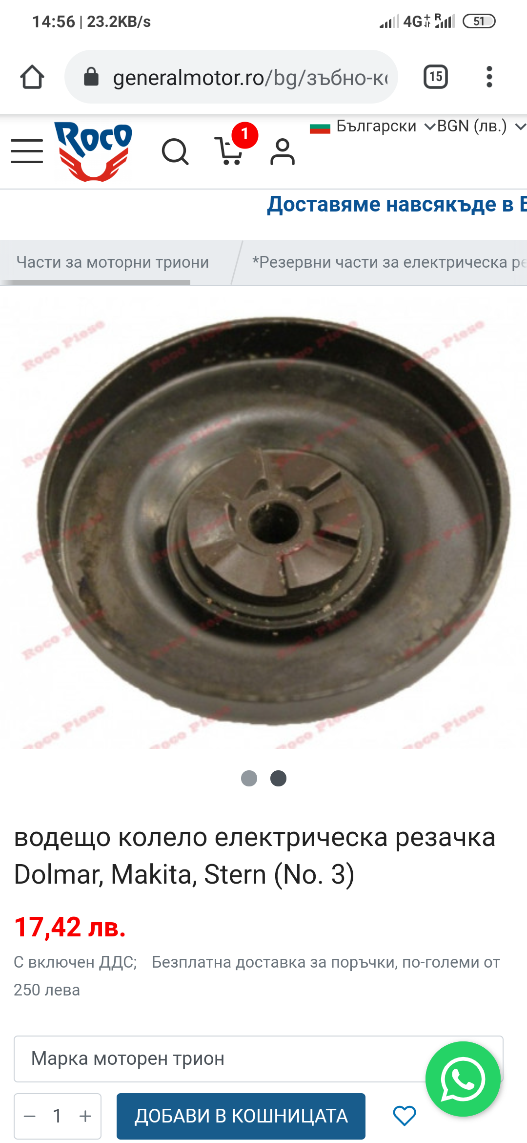 Имам един електрически верижен трион Макита с износена водеща ролка. В ташев има 77лв струва , незная дали има наличност. Намерих с доставка от Румъния 32лв всичко. Дали има някъде от България да се вземе около тази цена или да не си губя времето и направо да я поръчвам ?
