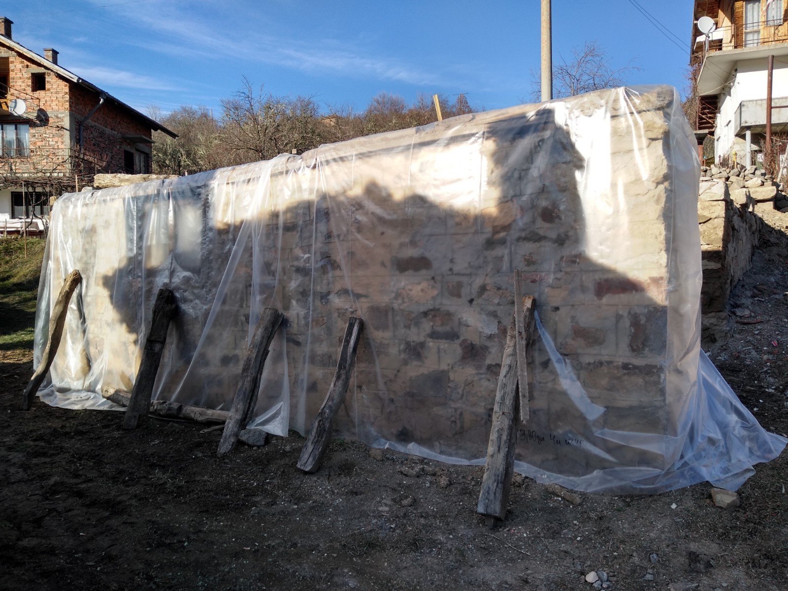1.Как да укрепя трите зида които са частино подпряни със земя от вън?