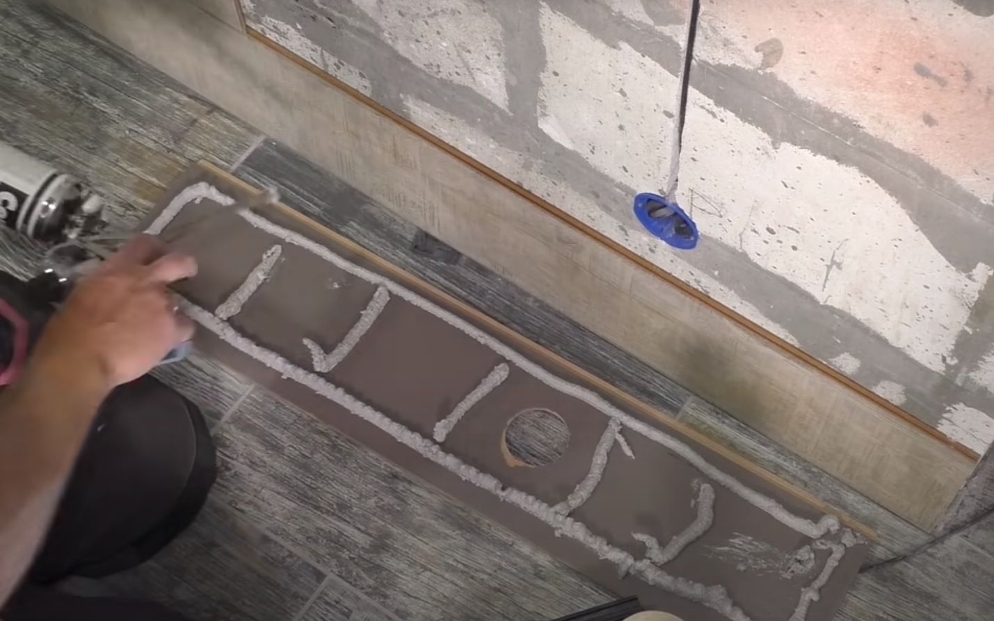 Този който аз лепих от снимката по горе беше същия, със същата сглобка. До отворя на врата се справя сам, там ширината беше 240 см и не беше особенно трудно. Сглобявам целия ред на пода, мажа силикон и внимателно го вдигам на стената. След като стигнах над отвора на врата вече си трябваше втори човек, едно защото редовете станаха по дълги, второ защото си стана и високо.