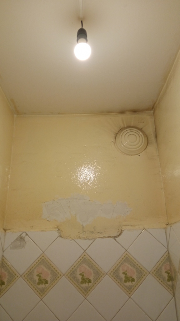 Тоалетната е самостоятелно помещени, с малки размери. Доста старичка, но пък върши работа. Дойде й ред и на нея за освежаване, и съм решил да направя следното нещо(ще се ориентирате по снимките): Премахвам мивката и понеже помещението няма канал, пригодявам сифон на пода от канала на мивката. Къртя плочките. Извеждам нови кабели за осветително тяло, най вероятно лед панелче в средата на тавана и понеже няма вентилатор, втори кабел от фазата за към вентилатора, с двоен ключ, за двете по отделно. Понеже не съм много добър със шпакловането идва тънкия момент...минавам блажната боя по стените с ламелата на флекса, минавам всичко с бетон контакт и лепя гипсокартон, от тънкия бял. Фугирам с мрежа и гипсова шпакловка и слагам латекс, миещ се, без да шпакловам стените изцяло. Около вратата обикалям гипсокартона с лайсна. Подът ще е гранитогрес с флексово лепило, без перваз. Первазът ще е пластамасов, с винтове за стената.Тоалетната е моноблок. Не е с долно пълнене, както ми се искаше, но пък е компромисен вариант от другите му характеристики.
