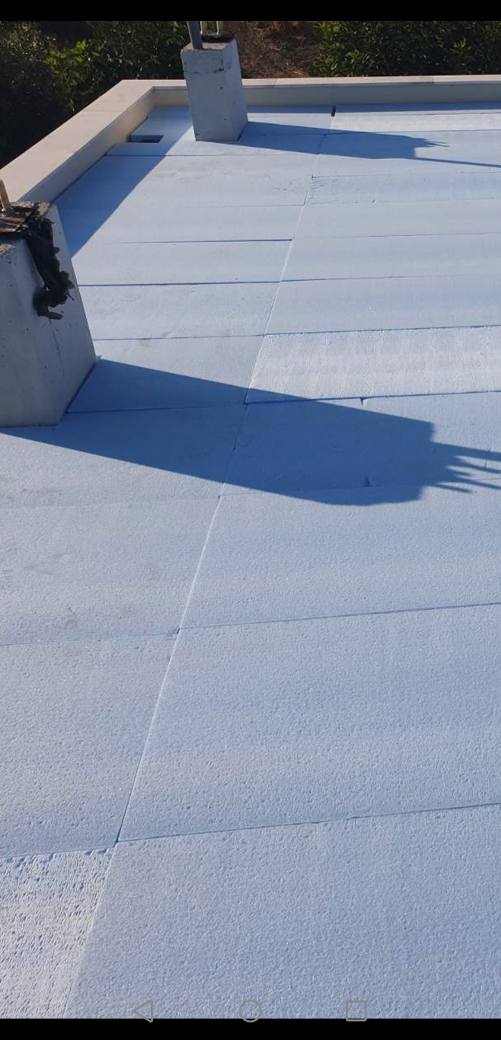 ср май 18, 2022 10:32 pmschuldiner написа: Разбирам, че оригинално покривът е бил със седящи /вградени/ улуци, които се падат над стреха, после с топлоизолацията са покрити, а най-отгоре е направено хидро. Ако е така, вероятно улуците преливат под топлоизолацията, водата се разлива по плочата, която също е хидроизолирана, затова не ви капе в стаите. Но всички бетонови плочи нормално провисват и тази вода се събира в центъра на сградата, точно при отдушниците.Намерих снимки на изолацията, тази може ли да се спаси или вече е за смяна и тя?