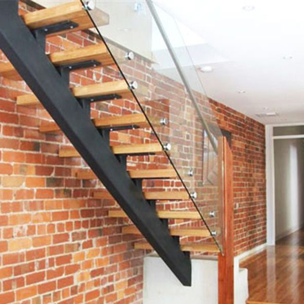 Аз си представям нещо такова: Профил затворен 160х80х5mm, анкерен към трегер и плоча. Стъпало от дъб 4см (или 2х2см слепен) с размери 27х100см (2см презастъпване със следващо стъпало). Парапета към помещението трябва да съчетава и функция за стабилизиране на стъпалата.