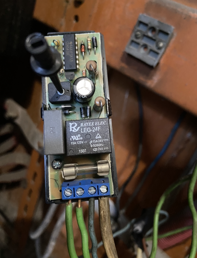Здравейте. Имам проблем от една седмица със стълбищното осветление. Една вечер е светело около 6 часа без да изгасва. Съответно като се прибрах го изключих. Входа ни е 5 етажен. Помислих че има задържан бутон и написах бележка до всички живущи да си проверят вкъщи бутона дали не е останал натиснат. Имаме и доста апартаменти който не се използват съответно бутоните няма кой да ги натиска. След няколко дни опитах да включа но отново не изгасват след зададеното време от минута и половина. Реших да елиминирам един от двата кабела отиващи до бутоните за да разбера дали ще има ефект. При разкачване не кабела за 25-те бутона по етажите автомата изключва нормално. Тоест другия включен кабел е само за бутона намиращ се до входната врата и вратата за мазите. Няма задържал бутон защото съм просвирил кабела който разкачих и свири само когато накарам някой да натисне произволен бутон нагоре по етажите. Няколко дни по късно видях че една комшийка е сложила крушка която светеше много силно. По нейни думи крушката е от една година там. Качих се и какво да видя? 200 вата крушка. Дори незнам от къде изобщо може в днешно време да се намери такава. На повечето етажи съм сложил енергоспестяващи крушки иначе. Прилагам снимки на управлението. Странно че отзад на платката нещо е преправяно. При светване на крушките освен на 1 и 2 имам фаза и на 4 което иначе трябва да си е нулата на бутоните. Фазомера не свети силно като на 2 обаче. Някаква идея да ми дадете колеги?