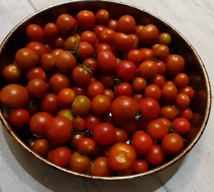 Оригиналното дребното още е зелено. Но почнаха и другите домати.