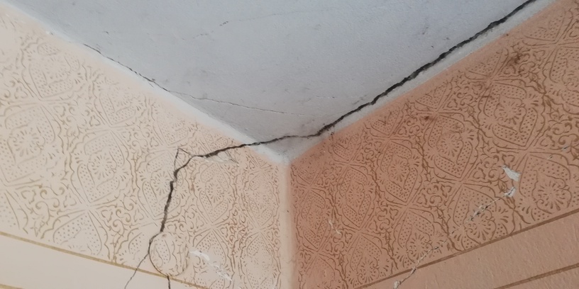 Здравйте, моля за съвет. Имаме стара къща в село, където майстори няма... Има много за правене, но най-спешна е дупка в тавана, която се рони ли рони (и процепи по стените на стаята има). Слагам снимка.