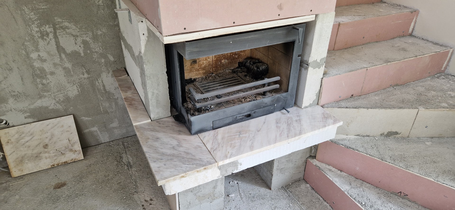 Малко почивка и почвам вътре с камината- трябва да измисля конструкция около нея, да лепя камък вътре и да преналея стъпалата за горния етаж. малко гипс картон и да боядисваме хола.