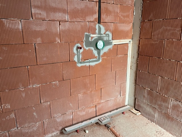 Казуса е, че с преналиването на плочата са заляли битумната хидроизолация и фибрана…. Къртене на бетон, чоплене на фибран и наставяне на газопламъчното не е вариант :-/