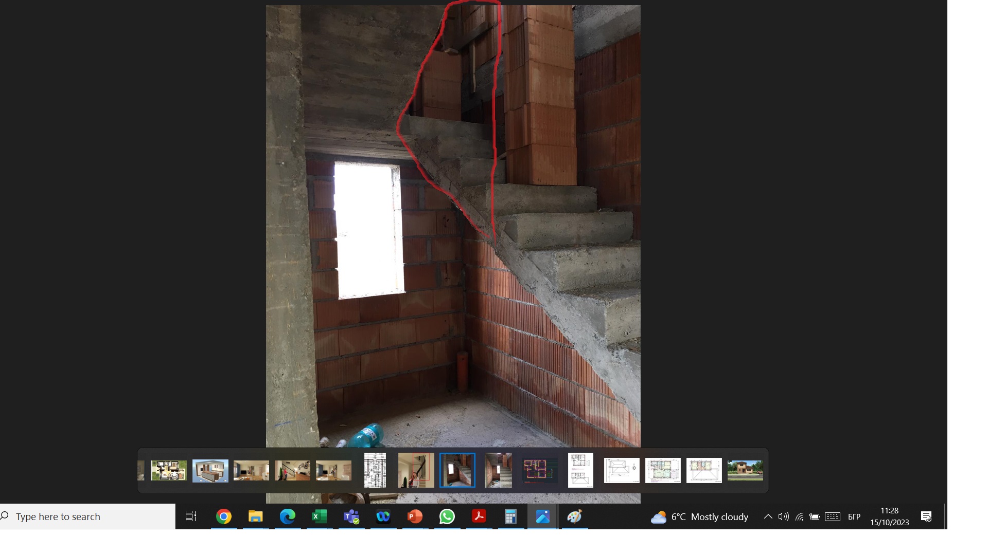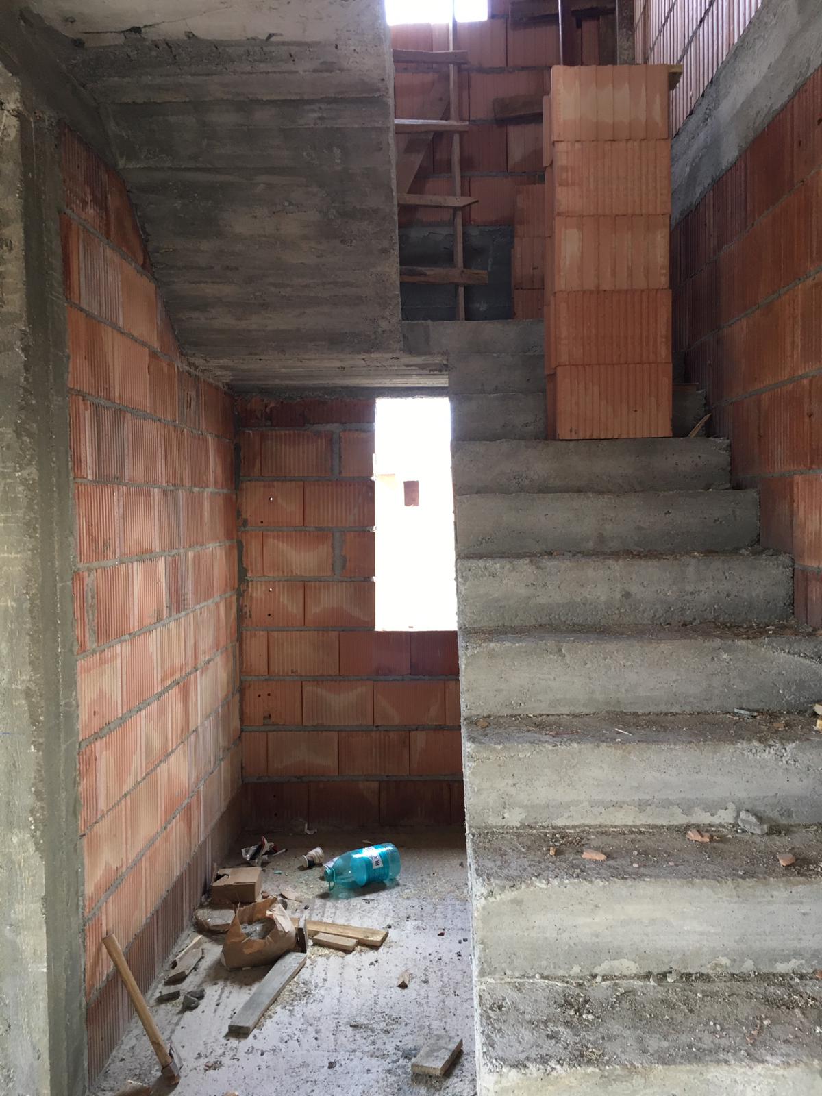 След изливане на стълбището обаче не ми става ясно как да скрия отвора, който ще се получи след изидване на стената за вратата. Не искам да пускам перпендикулярна стена навътре до долу. Не искам и гипсо-картон. Някаква идея за частичен зид под наклон?