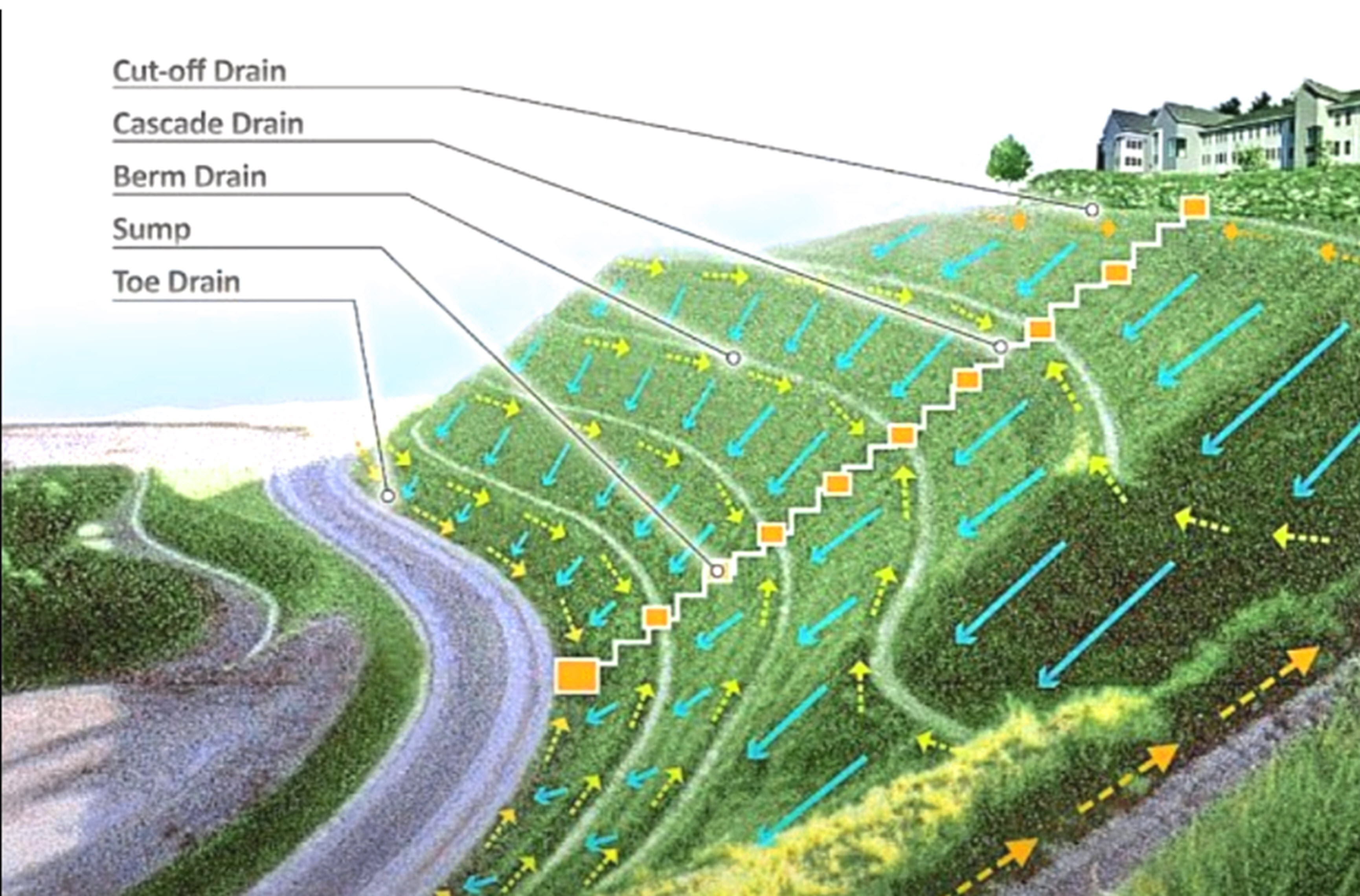 Дълбочината на основите в повечето случаи няма връзка със свлачищните процеси. Основите са дълбоки 0.8-3м, а хлъзгателната повърхност е често над 10-15м дълбочина, като рядко слиза под 5м (освен по периферията). Локалното отводняване и дрениране няма голям ефект. Трябва „комплексен“ подход.