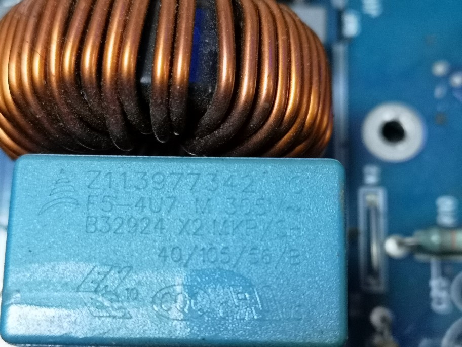 Тоят белият успоредно на електролитният ли е? Подозирам, че да и че компенсира високият ESR на електролитният. Свали го и го мери. Ако капацитета му е нисък сменяш и него. Май е филмов (film capacitor, идея си нямам как точно е на български), ама толкова голям не бях виждал. Има шанс да е читав. До сега такъв не ми е давал фира и да е цял след това.