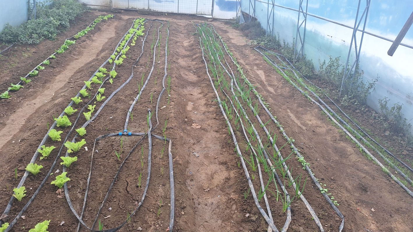 Аз не съм ходил този уикенд. Но бяха поникмали салатките. Лука от оранжерията го издърпа сляпото куче. Заедно с 300 праза, които не бяха в оранжерията. Ще трябва да вкопавам мрежа поне в нея.