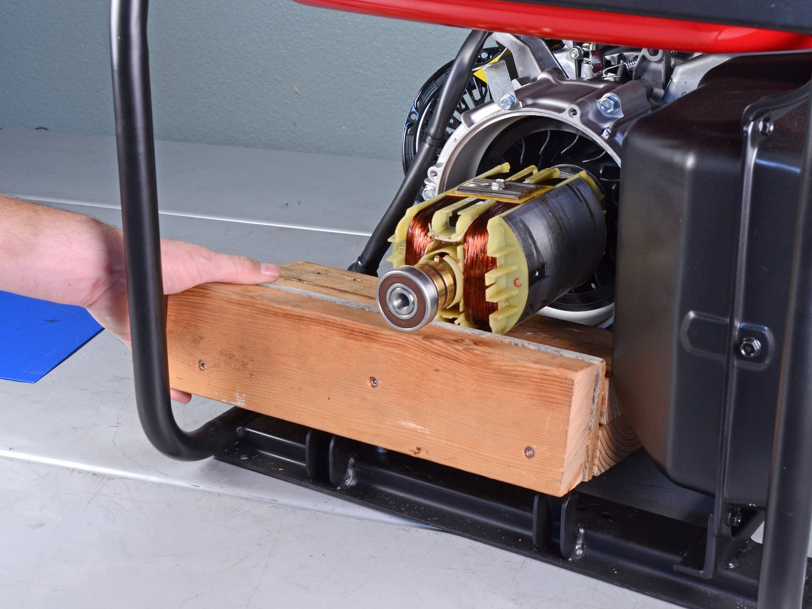 Имаш въртящ се магнит - в случая е електромагнит с два полюса. Виждат се двата колекторни пръстена които го захранват.