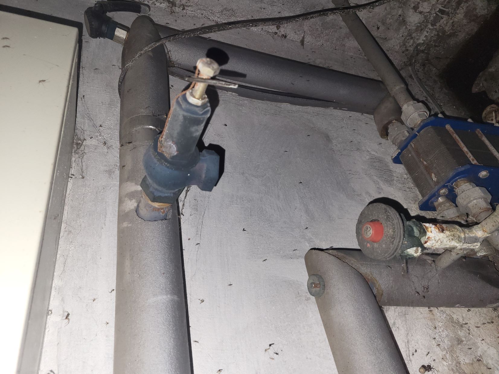 Друго което ми вади очите е чупката в тръбата до РС. Там трябва да се помисли за кран за обезвъздушаване. Възможно е да се обезвъздушава от предпазния клапан на тръбата към РС, защото има врътка за промиване на клапана.