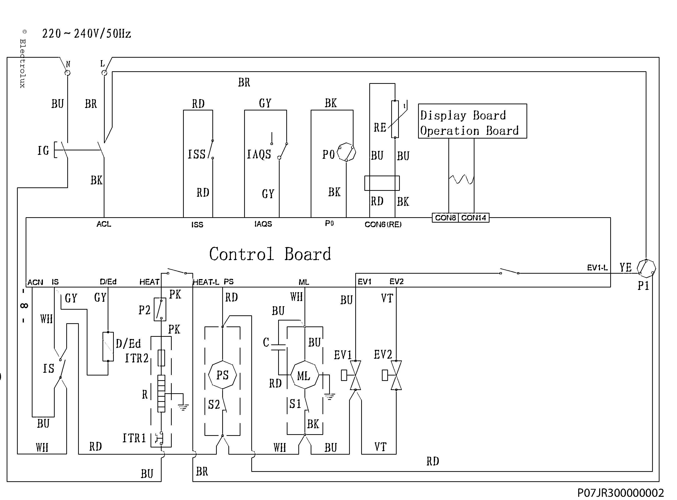 Както се вижда от схемата нагревателя има две защити ITR1 и ITR2 и е последователно свързан към мрежовото захранване (L и N) през защитите, пресостата Р2 (на тройника) и контактите на релето за нагревателя.