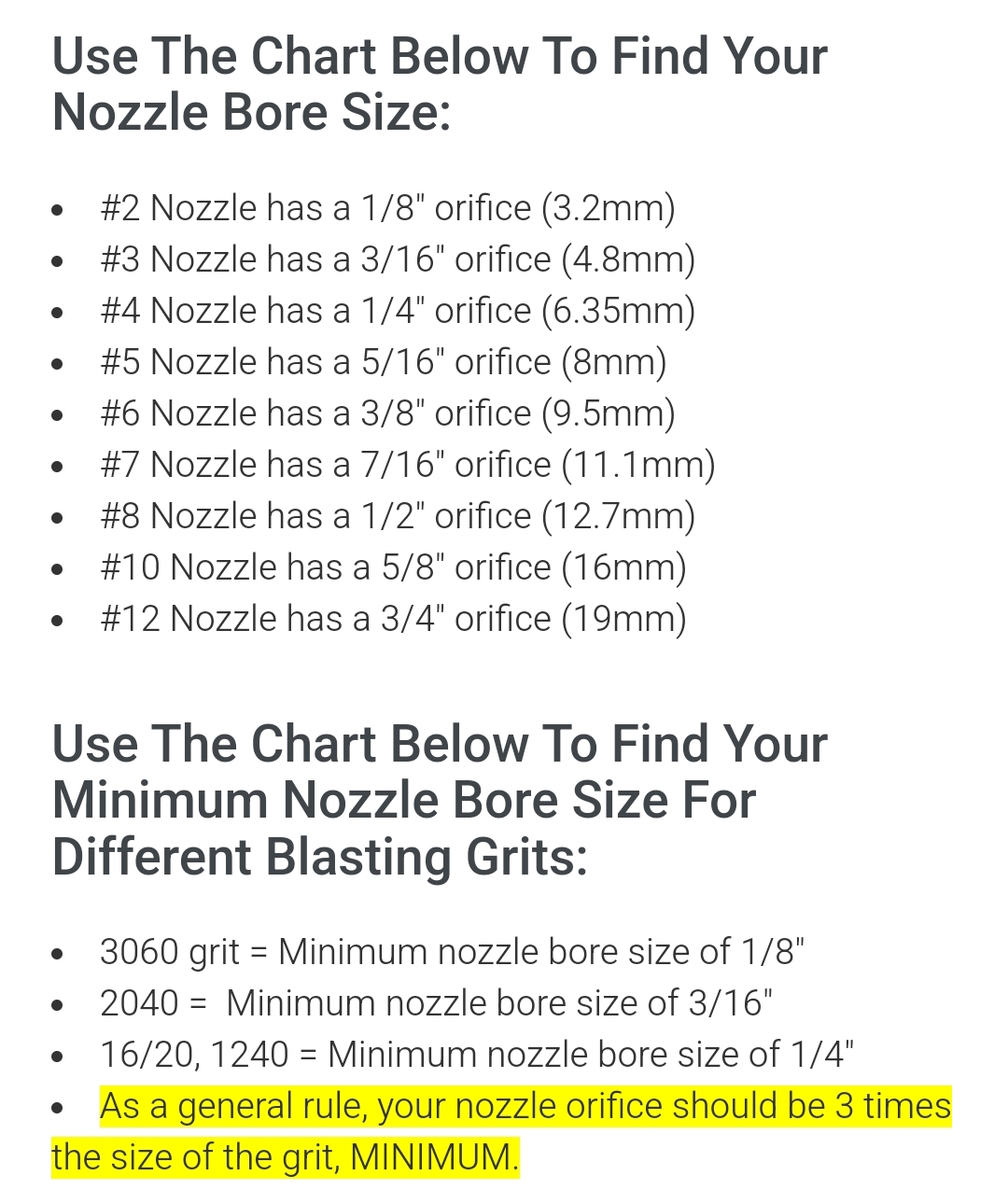 Здравейте, взех си една хоби машина 19л за външна употреба. Идва с дюзи 2-2.5-3-3.5мм. Абразив с каква едрина да ползвам за тези дюзи?