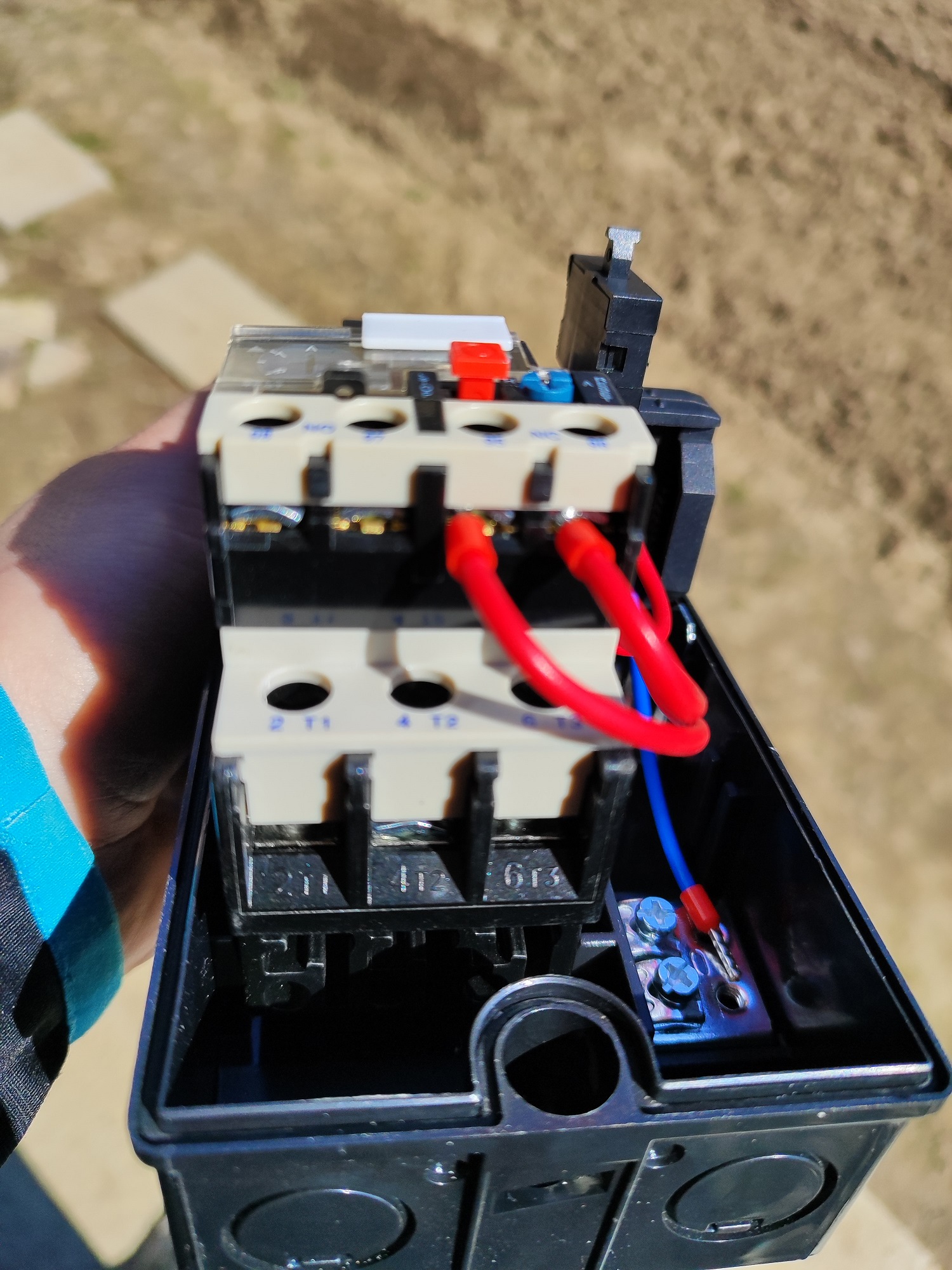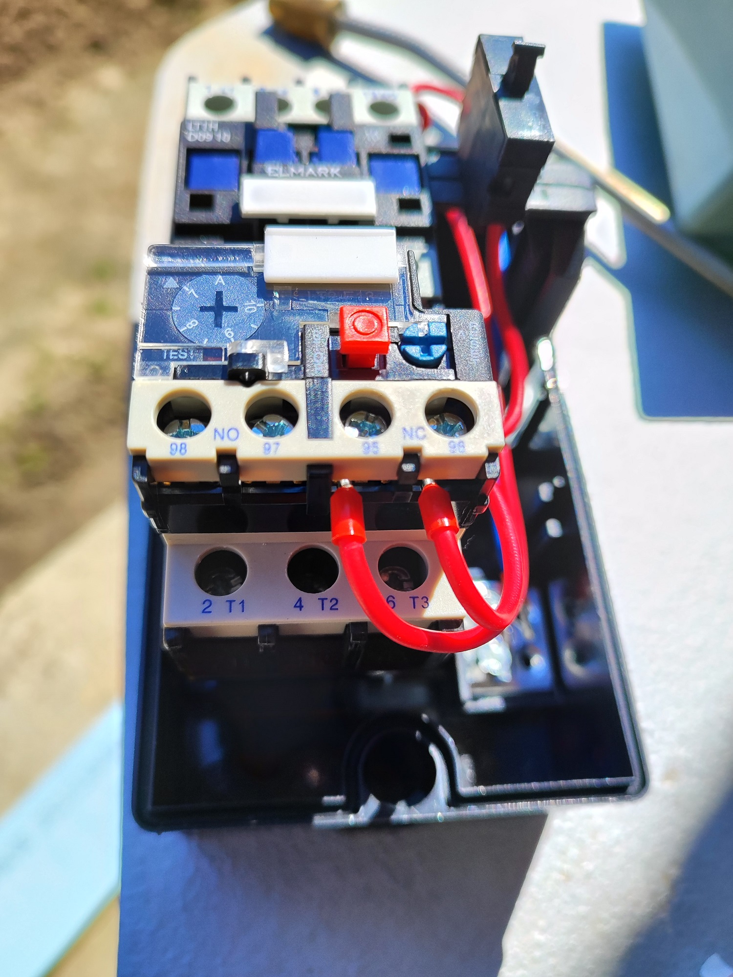 Моля за помощ за свързването на монофазна помпа към въздушен пускател ELMARK LT5-D093 (контактор и термореле).
