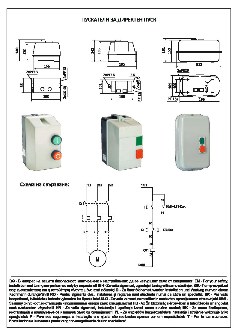 (възможност за други напрежения на управляващите бобини на пускателите)