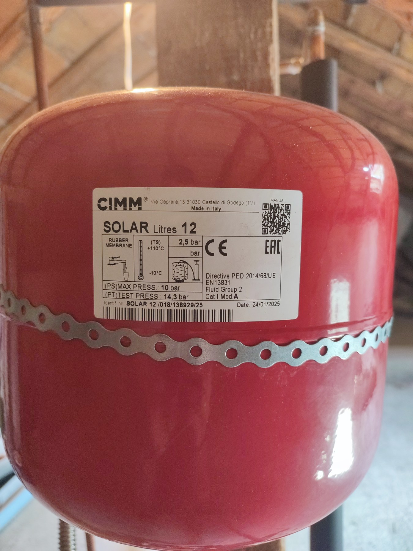 Здравейте! Имах изградена слънчева система от много години около 17 години, състояща се от един слънчев панел (не се сещам марката и бойлер sunsystem 100 литра. Нагряваше водата без проблем до 70-80 градуса, панела е поддържал лятно време 90-100 градуса. Сега добавих нов панел на Viessmann Vito 100 fm и премахнах стария бойлер от 100 литра и сложих стоящ бойлер от 200 литра на Eldom fv20060s2 (с две серпентини). Също така е сменен и РС, който е 12 литра. Панелите се намират на не повече от 1.5-2 метра височина от разширителния съд, бойлера е на същото ниво на разширителния съд, тоест цялата инсталация е на таванското помещение. Трасето на тръбите е около 26-27 метра медни тръби на 15мм и някаква част от 18мм. Имам помпена група също, помпата е на режим Auto. Имам контролер Intiel 3.1 DT-3.1. Течността в панелите достига до 90-100 градуса, а може и повече, но водата в бойлера не се нагрява повече от 62 градуса, в повечето случаи 55-60 при положение, че през деня е имало слънце (очаквах нагряване като преди 70-80 градуса). През деня на манометъра на помпената група достига 2.8 бара, а вечер и сутрин на студено пада до 0.7 бара. Сутрин на студено в разширителния съд налягането е около 3 бара измерено с манометър. Има ли някъде нещо сгрешено? Обмислям да сваля налягането на системата до 0 бара и да напомпя с въздух разширителния съд до 1.2-1.5 бара на студено и след това ако се налага и системата до 1.5-1.8 бара. Прилагам снимки на системата.