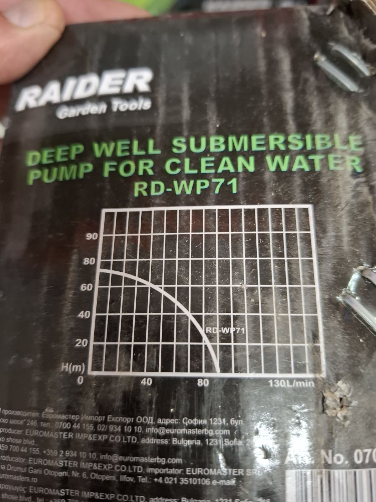 При мен в кладенеца има много малко вода и ползвам само като спре водата, като се повреди старата помпа, сложих този бюджетен Райдър. Напора ми е в повече, ватовете също. Но за бекъп вариант не е толкова важно.