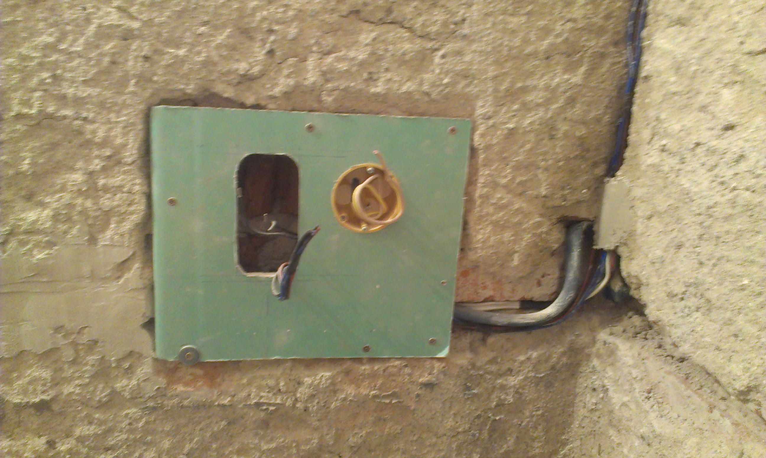 Изкъртих малко тухлите, прокарах ток (позиционирал съм го отляво до мястото, където ще бъде огледалото). След това изрязах парче влагоустойчив гипскартон, в който направих отвор колкото за панела.В нишата има място и за трансформатора, който го избрах тороиден, така, че да се сменя лесно при нужда като се измъкне през отвора за панела. До панела съм извел кабели и за контакт (за сешоар, самобръсначка...). Ето така изглежда преди мазилка: