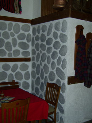 Ето една технология от Банско. Миналата седмица ходих там и гледам, повечето механи са облицовани с камъни. Викам си тука трябва да има кариера на близо, но като загледах зида от близо усетих че има нещо неред. Трябва обаче наистина да го загледате внимателно за да откриете разликата от истинския. Та поразпитах и ми обясниха как се прави. Наистина е много ефектно.
