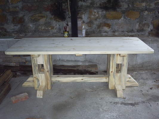 masterrichi написа:Може би нещо такова 290см.дължина,миналата седмица я правих,използвах стандартни греди10/10 и ребра 5/10 обработих ги и я сглобих плота го лепих.почвам и аз по този проект... и към masterrichi - някакви размери на основата, че идея си нямам на какво разстояние да са открая краката...