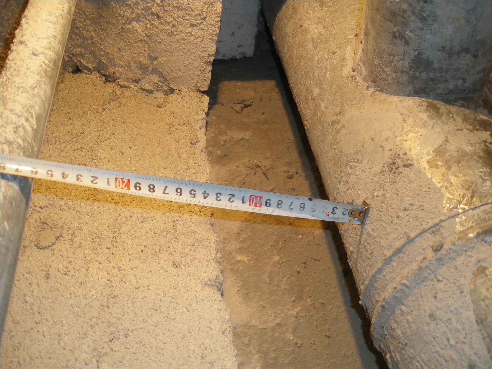 Не, не е еднакво разстоянието м/у стената и тръбите. Стената също е наведена в горния край, но по-малко.Меря също и спрямо с/уположната стена.Тя е под отвес слава богу.Мина ми през главата да изравня мазилката на стената по тръбите ама разликата е голяма. :?