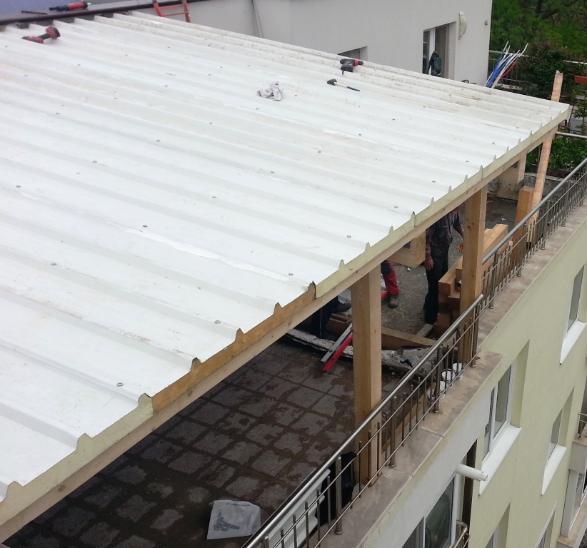 Някой може ли да препоръча фирма/майстор за кантиране на поставени вече покривни сандвич панели и уплътняване с ламарина по краищата им. Покривът е около 30кв.м общо. Прилагам и снимки: