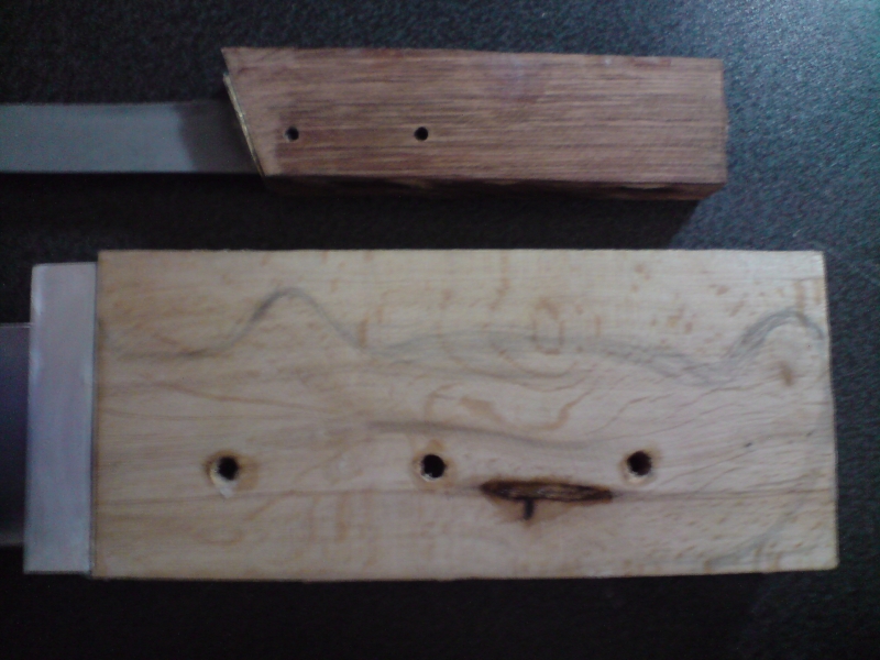 Вкопавам дръжката на ножовете в чирените. Имам снимка на залепените чирени, очертаваш си формата и фрезоваш по нея, каквато и да е тя. :)