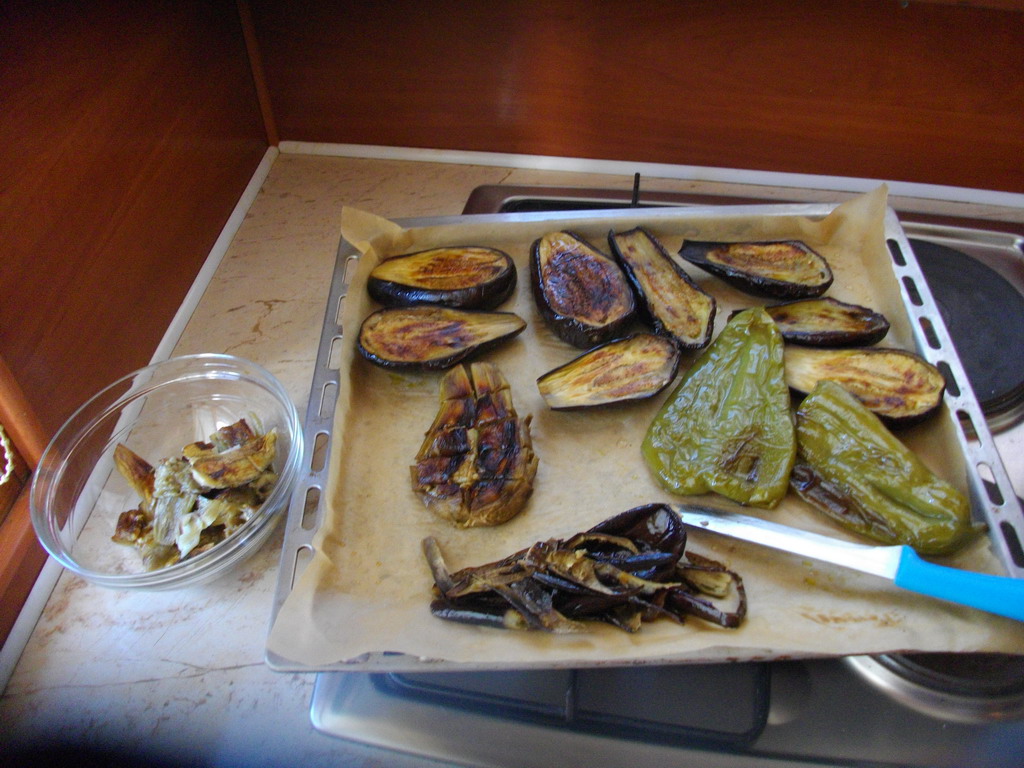 В случая от снимките съм добавил и 2 печени пиперки. След това си наливате ракийка и започвате да практикувате битов алкохолизъм или си каните приятел (един, щото за повече няма да стигне патладжана :-D ) и пиете ракийка с него. :partyman: :-D