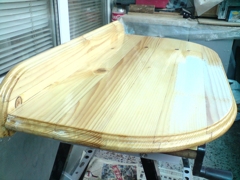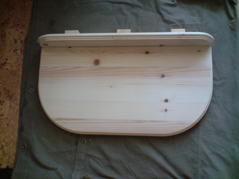 Габаритите му са 70см дължина, 37 см ширина. Шаблона е от фазер. Правил съм го само с една оберфреза и виброшлайф. Лакът е обикновен алкиден- май на Леко. В тая жега съхне за около 5 часа. На лицето е с 3 ръце лак. По нататък ще го покажа вече монтирано, че ми е малко далече барбекюто.