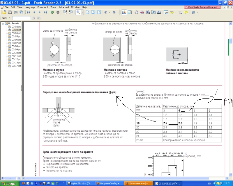 Удряш една черта на 2 мм./+2мм.ако има кант/ от ръба. До там ще ти е периферията на фрезата. След като направиш отвора, слагаш пантата, отбеляазвш с молив центъра на отворите. Вадиш, с шило или остро ножче "боцваш" за център на видийките и след това монтираш пантата на вратата.