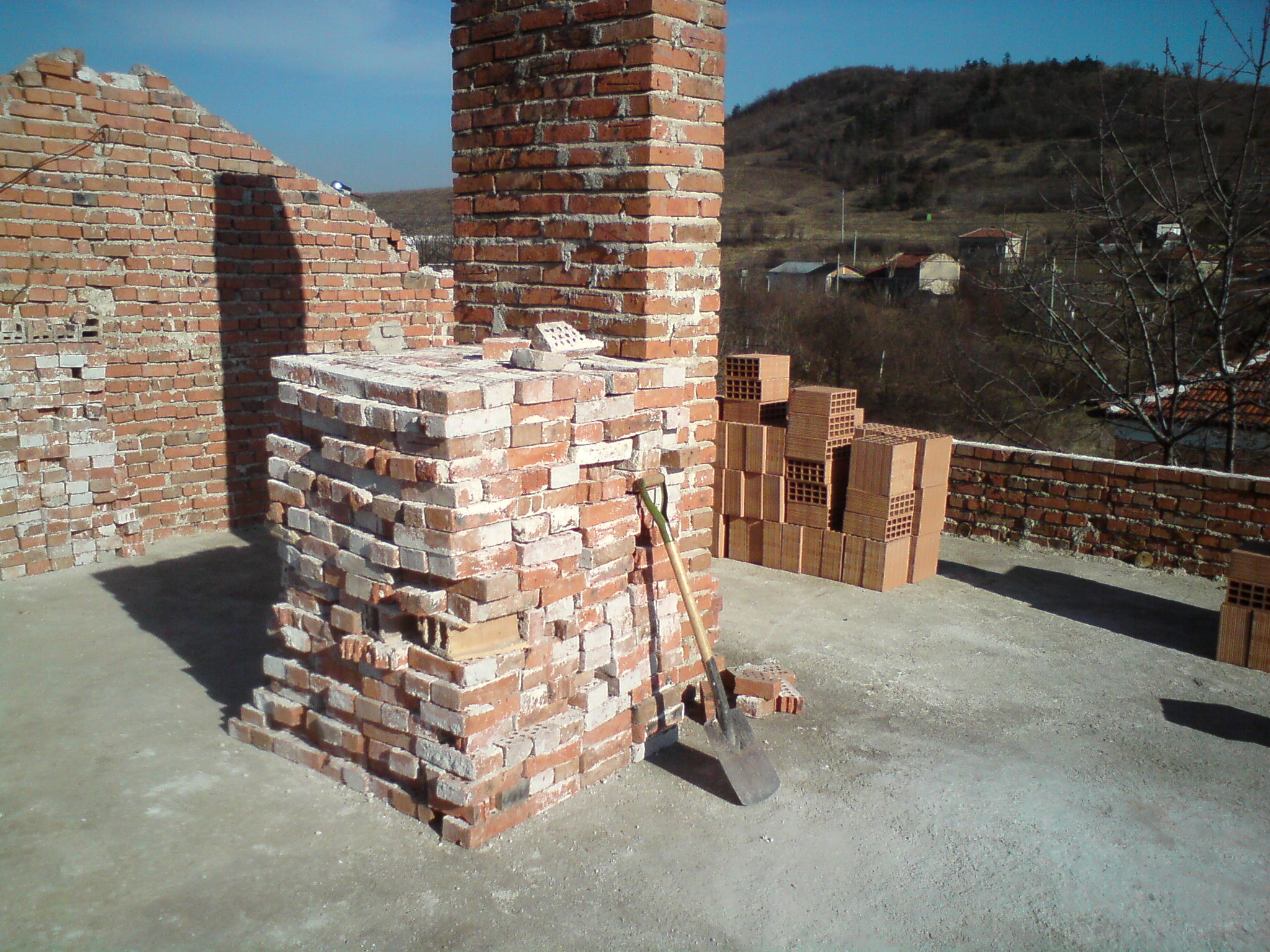 После сменихме покрива и доизпълниме плана на къщата за 2-ри етаж .Отначало си мислех да ползвам старите керемиди но се оказа , че са три чешита, което моментално реши съдбата им :-D . Междувременно поизрязах провисналите конструкции за лозите .