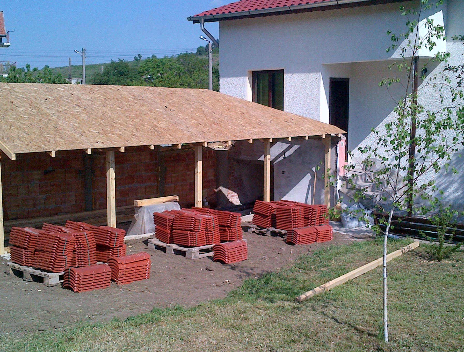 После сменихме покрива и доизпълниме плана на къщата за 2-ри етаж .Отначало си мислех да ползвам старите керемиди но се оказа , че са три чешита, което моментално реши съдбата им :-D . Междувременно поизрязах провисналите конструкции за лозите .