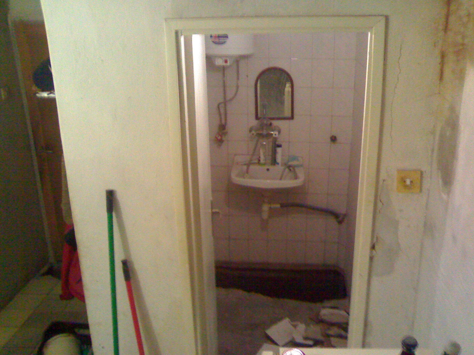 Ето още една снимка от същият ъгъл. Ето тази каса я избих и съборих стената след което я преместих с 20 см.за да увелича големината на банята.