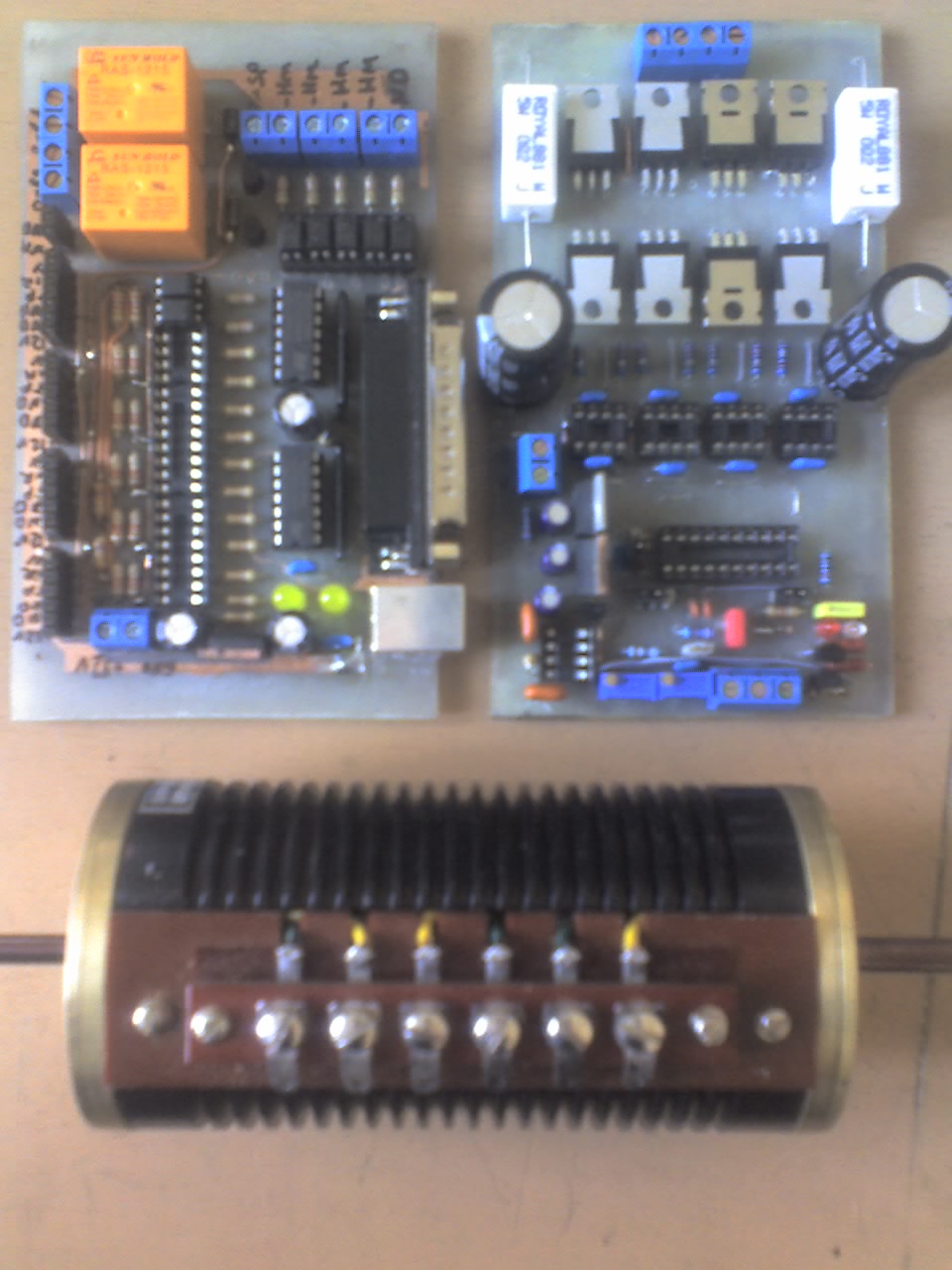 привърших контролера и драйвера, остана захранването и да настроя тока на задържане на мотора. Същия мотор ми го даде един приятел, но не бях го замервал до сега. мислех да го ползвам за оста Z и, че е две по две намотки с общи точки. Сега го меря и какво да видя - три независими намотки по 3 ома всяка.
