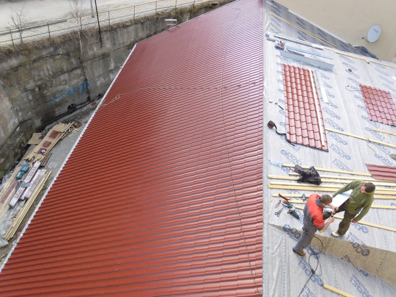 Това е, което направихме до момента. Затова аз съм за металните керемиди. За 1 ден монтирахме 20м улук, 2 водосборни казанчета, 20м надулучни поли, 16 м странични обшивки, покрихме 160м2 скат и обшихме 1 комин. Пак 3 човека. Ако имате въпроси, не се притеснявайте.