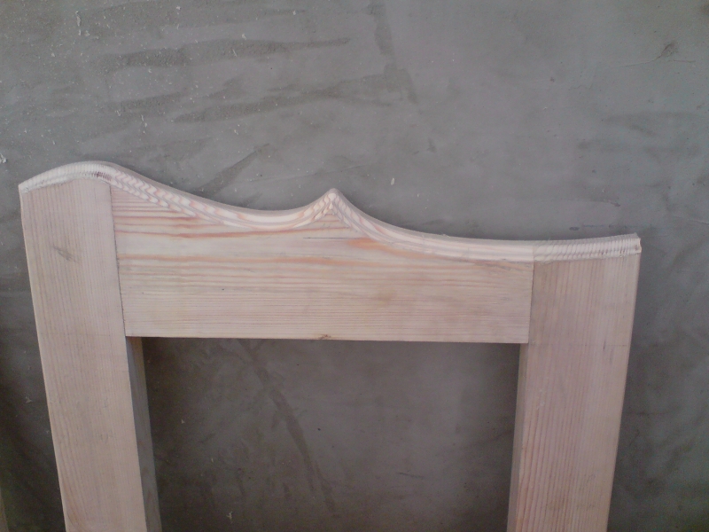 Второ действие- взех мерки, направих си модел и след това в склада за дървен материал- 2 броя борови талпи 2м-20см-5см=12 лв Стригосване на материала(щрайхмус) на точна дебелина 4см и цепене на едната талпа наполовина 8лв. Летвички от липа 1,3смх1см на 1,2м -15бр общо 7лв и два броя 4см х1см-2м-5лв. Панти каубойки намерих още миналата година италиански от аукционбг -10 лв и 2-та комплекта.
